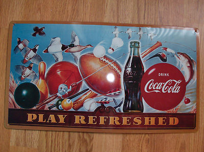 Title (ebay affiliate link): COKE PLAY REFRESHED METAL SIGN BY 1990s 10 by 18 inch
