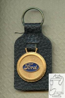 Vintage Leather Key Fob Keychain Gold Tone FORD