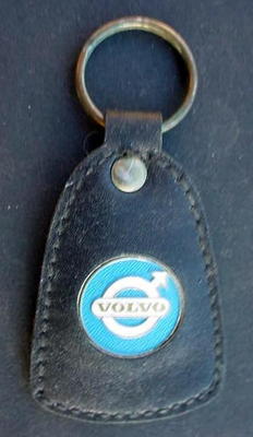 Title (ebay affiliate link): Old Vintage Volvo Car Keychain Tag Fob Enamel Emblem in Leather