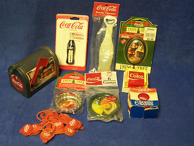 Title (ebay affiliate link): Assorted Coca-Cola Collectibles Coasters Tins Ornaments Recaps Magnet Tin