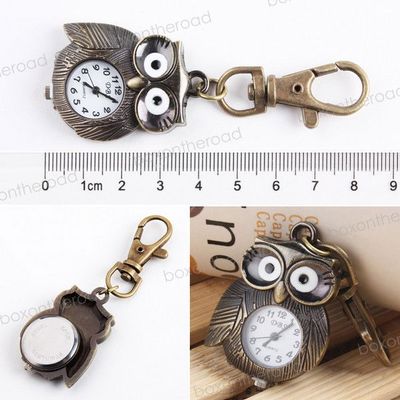 Title (ebay affiliate link): Hot Gifts! Antique Bronze Tiny Owl Pocket Quartz Key Chain Ring Watch Pendant