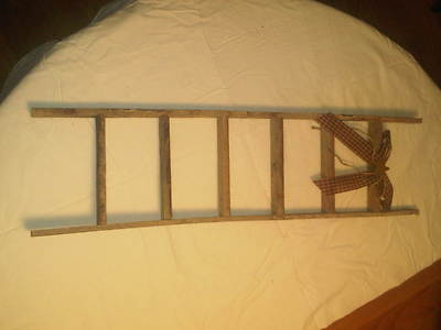Title (ebay affiliate link): Primitive Ladders made of Lathe. The Ladders have a country ribbon on them.