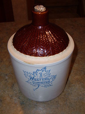 Title (ebay affiliate link): Antique primative Western Stoneware crock jug-Old cabin decor Moonshine jug