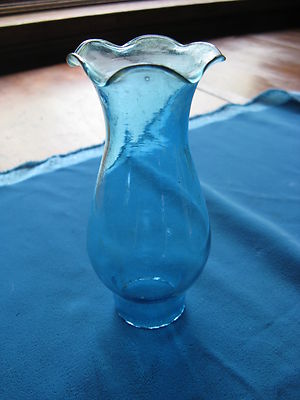 Vintage miniature peacock blue glass hurricane oil lamp shade