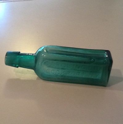 Antique/Old Teal/Green Gargling Oil Lockport N.Y Marked