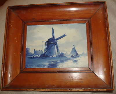 Title (ebay affiliate link): Antique C.1880 Delft Tile in Frame From Estate Windmill Harbor Boats Beautiful