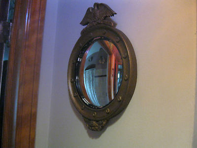 ANTIQUE FEDERAL BULLSEYE MIRROR WITH CONVEX GLASS AND EAGLE