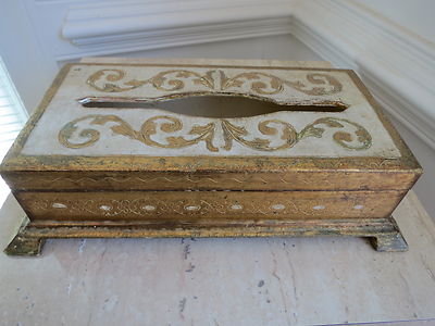 Title (ebay affiliate link): VINTAGE ITALIAN FLORENTINE Gold & Cream Tole Tissue Box Footed Wonderful