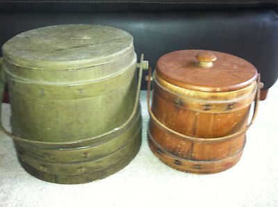 Two Nice Vintage Shaker Firkin or Sugar Buckets With Lids