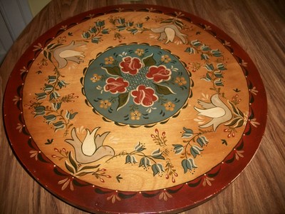 Title (ebay affiliate link): 16" Vintage Round 1 Tier Oak Wood Lazy Susan Tole Hand Painted Roses & Birds