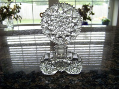 CZECH CUT GLASS PERFUME BOTTLE VINTAGE 1940s FAN STOPPER excellent