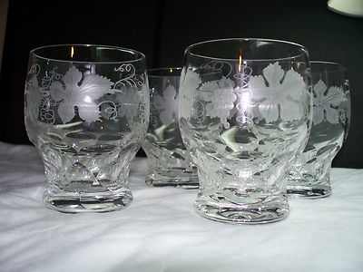 Title (ebay affiliate link): 4 Val St Lambert Vintage Vignes Honeycomb Cut Engraved Crystal Rocks Glassware