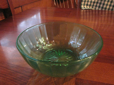 Title (ebay affiliate link): Large Fruit Berry Dessert Serving Bowl Green Depression Uranium Vaseline Glass