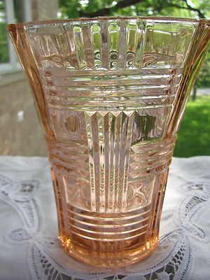 Title (ebay affiliate link): PINK DEPRESSION GLASS -HOCKING PRISMATIC CRISS CROSS -QUEEN MARY ART DECO VASE