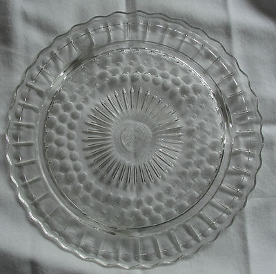 Title (ebay affiliate link): CLEAR DEPRESSION GLASS 3 FOOTED 11 3/8" CAKE PLATE 1930'S SUNBURST, DOTS, PANELS