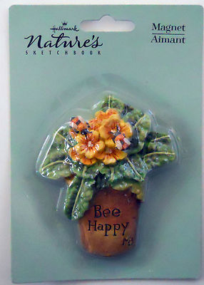 Title (ebay affiliate link): Hallmark Marjolein Bastin Flower Pot w/yellow flowers 'Bee Happy' magnet, MIP