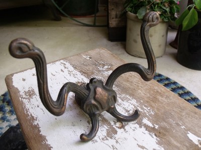 Title (ebay affiliate link): Fancy Antique Cast Iron Coat Hook Hall Tree Hook Worn Copper Finish
