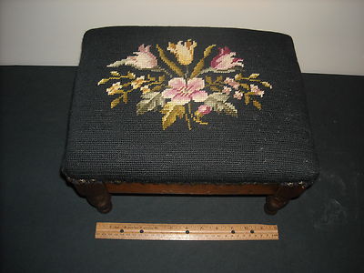 Title (ebay affiliate link): ANTIQUE CA.1930S-1940S 14" NEEDLEPOINT DARK WOOD FOOT STOOL CLEAN PERFECT CON*NR