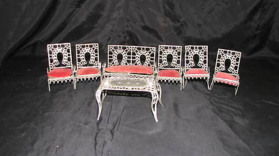 ANTIQUE SET (7 PIECES) LEAD DOLLHOUSE FURNITURE / 1895