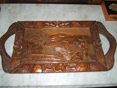 Vintage wood carved serving tray