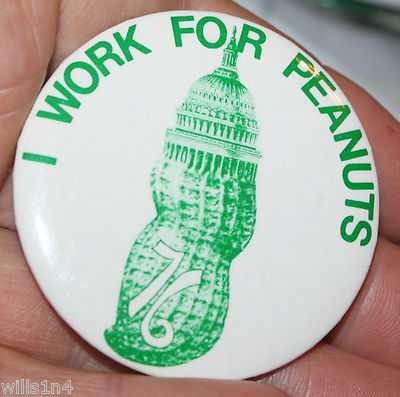 Title (ebay affiliate link): Jimmy Carter I work for Peanuts Capital/Peanut 2.25" Campaign pinback 1976
