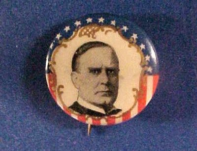 WILLIAM McKINLEY BADGE Button Pinback Pin 1896 Gold vs Bryan Silver Campaign