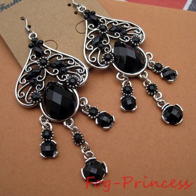 Title (ebay affiliate link): ANTIQUE TIBET SILVER BLACK CRYSTAL STONE ETHNIC DROP DANGLE CHANDELIER EARRINGS