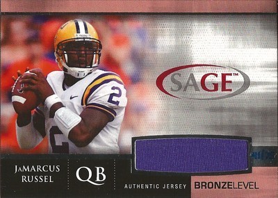 Title (ebay affiliate link): 2007 SAGE HIT J14 JaMarcus Russell Bronze Level Jersey #41/75