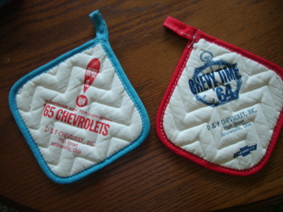 Title (ebay affiliate link): 2 Vintage Advertising Pot Holders Chevy 1964 & 1965 Jeromesville OH D&F (A)