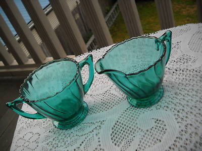 Title (ebay affiliate link): Vintage Aquamarine Swirl Depression Glass Creamer Sugar