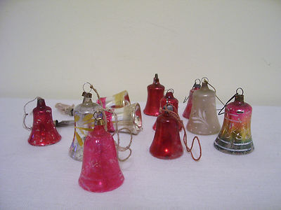 Title (ebay affiliate link): 11 EARLY VINTAGE BLOWN GLASS CHRISTMAS TREE BELL ORNAMENTS ANTIQUE GLASS CLAPPER
