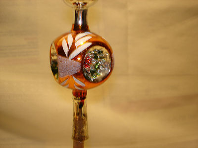 Antique Christmas TREE TOPPER MERCURY GLASS, 3 way INDENTED BALL, 11" hand paint