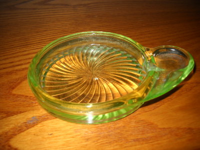 Title (ebay affiliate link): GREEN VASELINE DEPRESSION GLASS Ashtray - Perfect!!