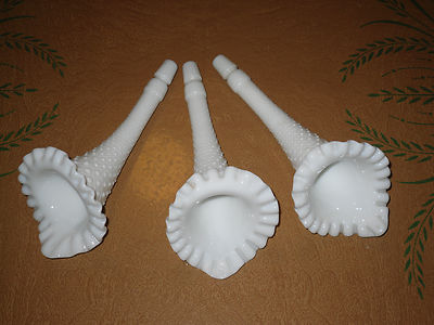 Title (ebay affiliate link): Vintage 3 Fenton Horns Diamond Lace Pattern for Epergne 1950's Milk Glass