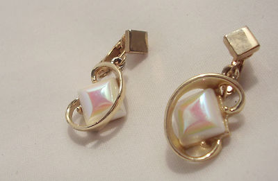 Iridescent Milk Glass Clip Back Dangling Earrings