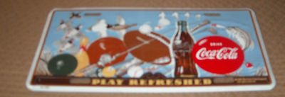 new coca cola license plate with sports and fishing PLAY REFRESHED 1994
