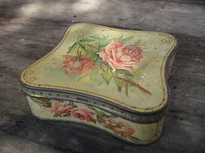 Title (ebay affiliate link): Shabby Chic Vintage FRENCH Biscuit Tin Faded Roses UNUSUAL SHAPE