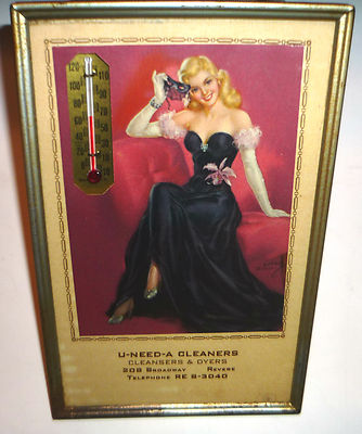 Title (ebay affiliate link): FRAMED PICTURE OF BLONDE WOMAN w/ BUILT-IN THERMO & ATTACHED BACK 1951 CALENDAR