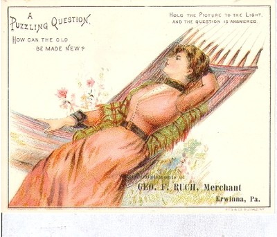 HOLD TO LIGHT, ERWINNA, PA, GEO. F. RUCH, MERCHANT, DIAMOND DYES, ca 1880s