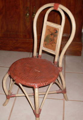 Title (ebay affiliate link): VINTAGE RATTAN CHILD'S CHAIR WITH ARTWORK BACK INSERT