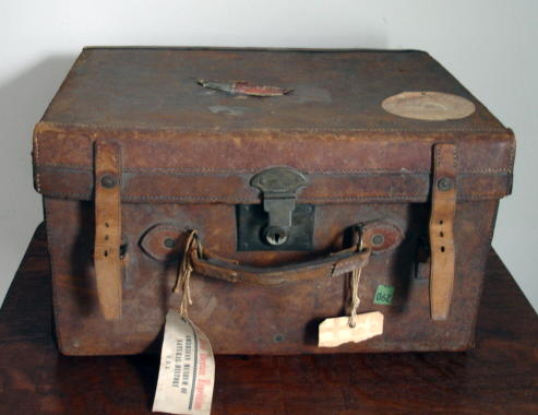 Title (ebay affiliate link): ANTIQUE MINI LEATHER TRAVELING STEAMER TRUNK / CHEST