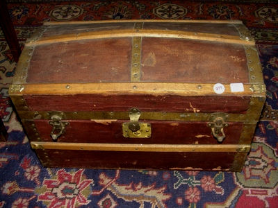 Antique Leather Dome Top Doll Trunk Chest 1800's