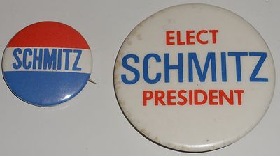 Title (ebay affiliate link): Two John Schmitz buttons -- American Party 1972