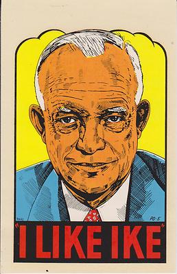Title (ebay affiliate link): 1950s Presidential decal Eisenhower 'I Like Ike' by Lindgren-Turner