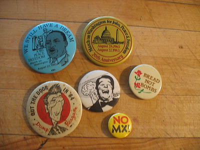 Title (ebay affiliate link): 6 Political Buttons Martin Luther King Ronald Reagan Anti-War Peace Jobs Freedom