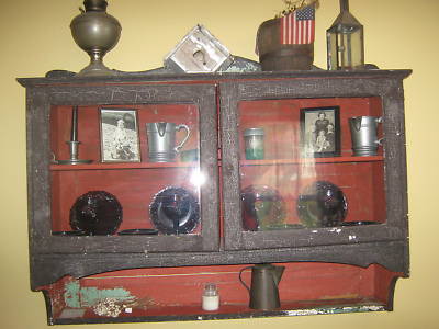 PRIMATIVE WALL CABINET SOME OLD PAINT