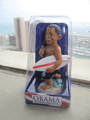 Title (ebay affiliate link): Collectible Barack Obama Dashboard Doll surfer in Hawaii - Aloha President