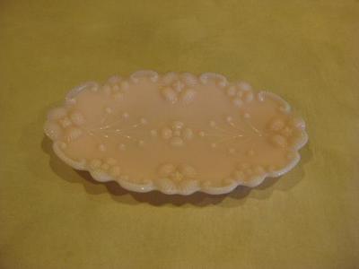 FOSTORIA PINK MILK GLASS DISH MARKED WITH STICKER JEWELRY DISH? VTG. FOSTORIA
