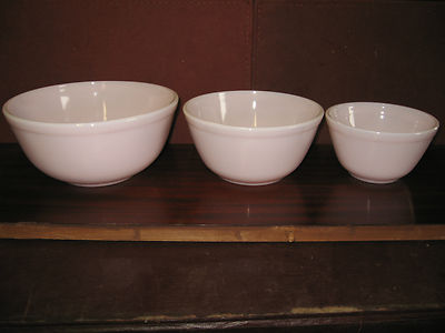Title (ebay affiliate link): 3 piece pink milk glass mixing / nesting bowls set serving crown tuscan rose art