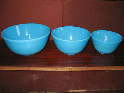 Title (ebay affiliate link): 3 piece Blue milk glass mixing nesting bowls set serving bonnie baby powder art